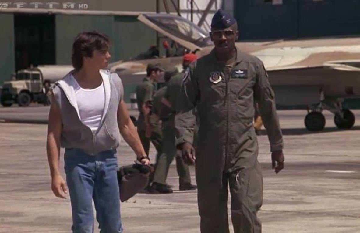 To opowieść rzeczywiście mało poważna. Mamy dzieciaka (klawy, ejtisowy Jason Gedrick), który nie dostał się do akademii lotniczej, ale jest tym dokooptowanym do bazy nastolatkiem, który spędza życie w wojskowej rodzinie. Ma przyjaciół tylko z tego lotniczego kręgu. Jakiś syn komandora, córki nawigatora, dzieciak od pułkownika, ktoś tam od majora itd. Włóczą się po bazie, latają sobie samolotami cywilnymi, spędzają czas na symulatorach lotów. I ojciec naszego głównego bohatera podczas jednej z akcji na bliskim wschodzie został pojmany. Nie jest wskazany jasno kraj czy raczej kraik. Wiadomo, że oczekuje egzekucji, a Doug bo o nim mowa, bierze sprawy w swoje ręce. Pomaga mu mechanik, pilot weteran Charles „Chappy” Sinclair (Louis Gossett Jr.) i oczywiście znajomi z placu zabaw. Planują, zdobywają mapy, dwa samoloty F-16 i ruszają na akcję. No bądźmy poważni.