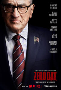 Ale Dzień zero jako serial, powtarzam, wciąż dobrze się ogląda nawet jeżeli przekaz jest mętny. Nie wiadomo bowiem, czy twórcy chcieli coś wskazać, piętnować, czy jednak bawić się gatunkiem. Opowiadają wprawdzie jasno o człowieku, który raz jeszcze musi dobyć miecza w świecie, który trudno zrozumieć. Robert De Niro zagrał George’a Mullena, byłego uwielbianego prezydenta, który staje na czele komisji badającej cyberatak. Komisja daje wiele uprawnień i Mullen korzysta z każdego jednego.