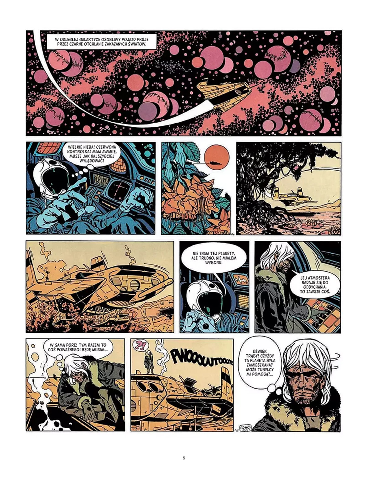 To kosmos z ery Wodnika, kosmos pociągnięty farbami z wiadra z LSD. Jest pięknie, barwa jest mocna, niemożliwa, agresywna. Grube kontury, odważne kontrasty. W całym komiksie trwa nieustanna bitwa kolorów. Czerwienie biją się z zielenią, niebieski atakuje żółty, na plansze rozlała się cała paleta. Po pierwszej stronie wiedziałem, dobrze się będę tutaj czuł.