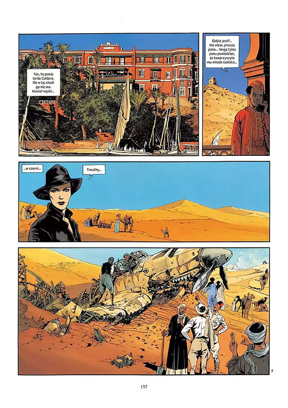 Scenariusz Dufauxa trafia czasem na mielizny, zagrywki są niejasne, postaci niejednokrotnie odnajdywały się jak w brazylijskim serialu. Ma jednak Dufaux przebłyski, sam motyw poszukiwania mitycznej Księgi Thota jest świetny i są to pierwsze epizody. Dlatego ten album dość szybko pożera się na początku. Nie przeczę, że dopiero po czasie, gdy już opuszczamy Egipt, zaczyna nam coś doskwierać. Przebłyski w scenariuszu wciąż się zdarzają, ale to już nie jest ten sam klimat.