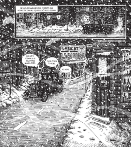 Punktem zaczepnym dla rozwiązania całego worka z atrakcjami jest rozmowa dwóch mężczyzn, ojca i syna. Ojciec jest niewidomy, ma pod opieką syna. Jest kilka nieścisłości co do tego, w jaki sposób ojciec stracił wzrok. Wszystko będzie wyjaśnione. Dużą część komiksu wypełniają wspomnienia z więzienia i znajomość z Nathanem Leopoldem skazanym na dożywocie za morderstwo 14-letniego Bobby’ego Franksa. Nie będę wchodził w szczegóły, to esencja Wypadku na polowaniu.