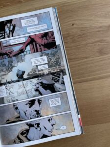 Jako samodzielny album kompletnie mnie wciągnął i oceniam go bardzo dobrze. Jest bardzo filmowy, tła są chropawe, kolory uderzają czasem w taki grunge’owy schemat. To jest ten przykład, gdy komiks mógłby służyć za doskonały materiał na film. Widziałem te sekwencje w trakcie czytania. Świetna przygoda.