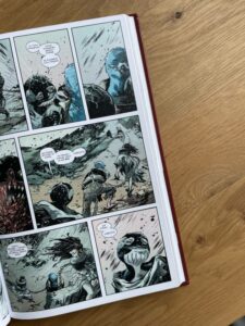 Ofiarnicy zatem zaskakują. Po pierwszych stronach, kiedy naprawdę zastanawiałem się „co ja tutaj robię” i „to nie mój świat” zmieniłem się w fana uniwersum. Są emocje, czuć dużo siły w działaniu kluczowych postaci, są i wiarygodne motywacje. A kreska Maxa Fiumary jest spektakularna. Kiedy zaczyna być naprawdę nieprzyjemnie, robi się też bardzo krwawo.