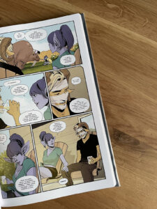 Bardzo możliwe, że dla mnie osobiście Saga stała się takim guilty pleasure. Lubię ten styl, wciąż zaskakuje mnie dosadne podejście do nieprzyzwoitych treści (tutaj w jednej ze scen otwierających mamy wgląd w narodziny robota i jest to przedstawione w taki sposób, że można doznać lekkiej konsternacji). Całość na plus, ale to jednocześnie ten przykład komiksu, w którym na pewno przestanę kojarzyć postaci, ich zależności i motywacje. Już się łapałem na tym, że nie do końca wiedziałem kto, z kim i dlaczego.