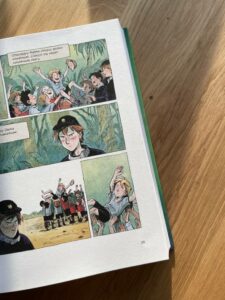 Niech Was nie zwiedzie dość sielankowa koncepcja na przedstawienie rozbitków, wyspy i większości wydarzeń. Groza zawita i do stylu, którym operuje Aimée de Jongh (chociaż mam wrażenie, że to jej najsłabsza strona). Przyjdzie na to czas w trakcie dramatycznych losów dzieciaków, które zostały rozbitkami na bezludnej wyspie.
