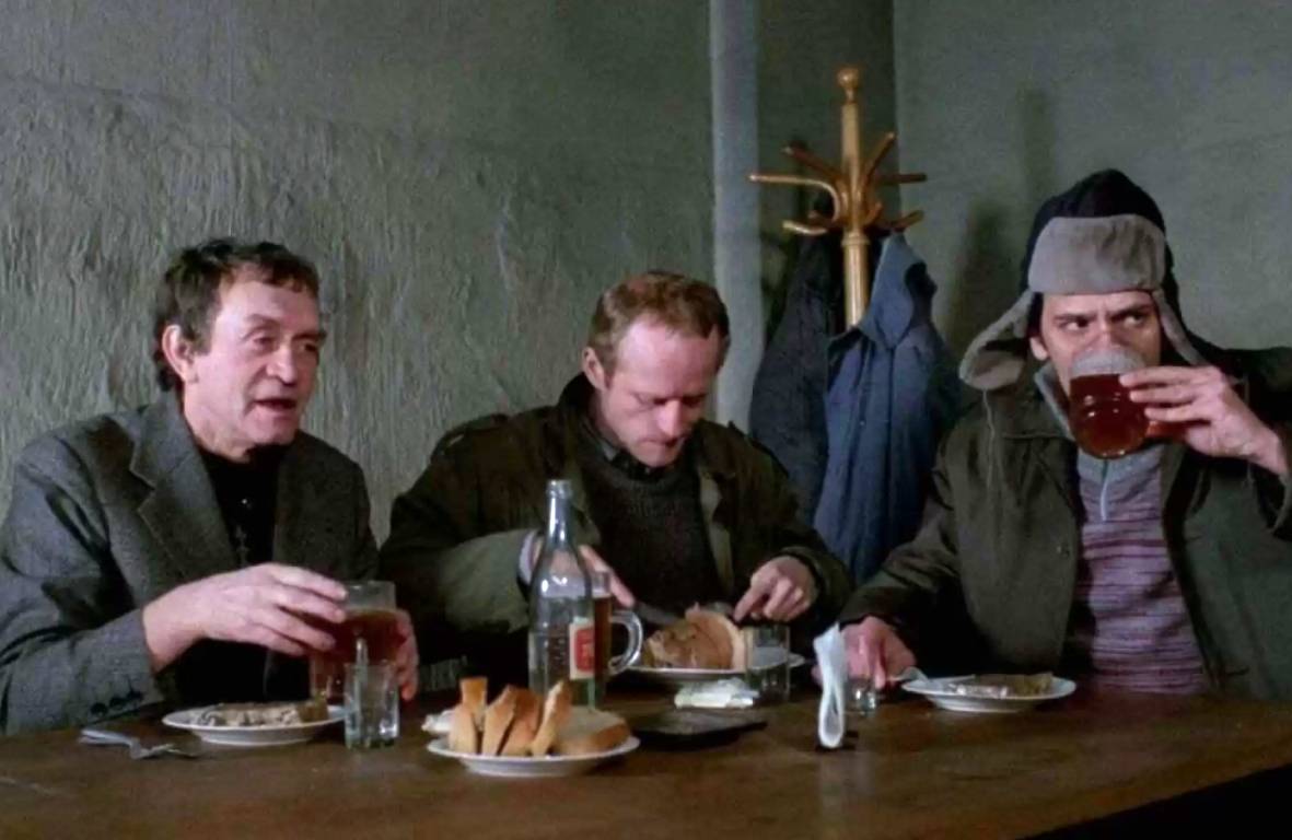 Filmową adaptacją Siekierezady Witold Lesczyński zajął się dopiero po samobójczej śmierci Edwarda Stachury. Ta atmosfera zagłady ludzkiej jednostki unosi się nad filmem, napięcie jest wyczuwalne. Janek jest otwarty na kontakt z innymi ludźmi, ale targają nim nieustannie emocje. Słucha, przygląda się (jak w tej scenie w knajpie pełnej pijaków straceńców), trwa. Ludzi spotyka tu prostych i szczerych, do działania motywuje ich piwo, wódka, bimber. Pochłaniają alkohol w przerwach pomiędzy pokładaniem drzew. Nic więcej. Rozmowy wszak są, te urywane, dłuższe, w alkoholowym bełkocie.
