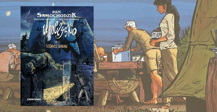 Zaczynamy więc Uroczyskiem, a po prawdzie Tajemnicami kurhanu czyli pierwszym tomem, którego autorem jest Mieczysław Sarna. Ilustrator, którego pracę można znaleźć w kilku powieściach o Panu Samochodziku nie miał łatwego zadania. Tu nie chodzi tylko przeniesienie na komiksowe medium kultowej PRL-owskiej powieści przygodowej. Wprawdzie Uroczysko jest tym mniej znanym dokonaniem Nienackiego, ale z tyłu głowy zawsze będziemy mieli Templariuszy, Mikulskiego etc. Czy nie „łatwiej” by było zagrać znane melodie? Sarna musiał zapewne nieustannie bić się z myślami. Wówczas oczekiwania fanów Pana Samochodzika mogłyby być nieznośne, a tak… a tak wchodzimy w ten świat od początku, gdy Tomasz jest jeszcze żądnym przygód detektywem amatorem, przede wszystkim niestrudzonym pismakiem, który pragnie coś przeżyć. I łapie się to w piękny schemat wchodzenia w pełną dorosłość. Mamy bowiem obok tej całej wakacyjnej przygody i znajomości z pewną dziewczyną (to jeszcze nie zakochanie) wszystkie punkty dobrej młodzieżowej klasyki. Są nocne włóczęgi jest i aura pełna tajemniczości.