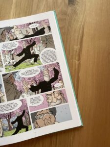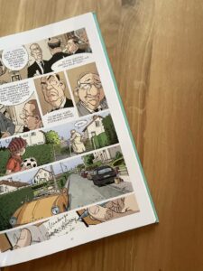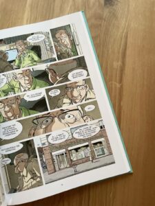 A pisząc jeszcze o samym charakterze komiksu, to jest to tytuł który owszem jest refleksyjny, skłania do przemyśleń, ale potrafi też dostarczyć trochę uśmiechu. Rozumiecie bowiem, że na głęboką wodę wypływa staruszek, którego od czasu do czasu łupie w plecach. Zdarzają się wypadki na trasie, trzeba będzie stawić czoła wielu niewygodom, na które człowiek młodszy mógłby machnąć ręką. Jest to lektura pokrzepiająca, zabawna, ale też mocno wzruszająca. Ilustracje natomiast to piękny i czysty rysunek autorstwa Sylvaina Vallée’a z delikatną szczegółową kreską. Ogromne walory artystyczne to nie tylko pomysł na rysunki, które przypominają mi piękny animowany film zatrzymany przez wciśniętą pauzę na pilocie. Tak to wygląda, z bogatym szczegółem w mimice, fantastycznym kolorem w krajobrazie. Te większe plansze, właśnie z tym nieco odrealnionym pejzażem przypominają nam, że o przygodzie zawsze trzeba marzyć, a najlepiej wyjść czasem ze swojej strefy komfortu. Amedee Petit-Jean to zrobił.