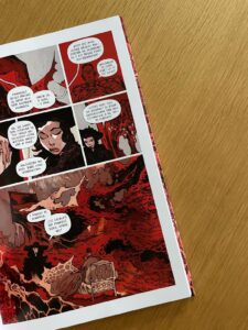 Rebelka natomiast rysuje w szaleńczym tempie, ma się wrażenie że z wariackim impetem, odwagą i idzie ramię w ramię z tekstem. Fantasmagorie Lovecrafta i główny fantastyczny wymiar oraz nastrój z jego utworów został zachowany. Nic na ziemskim padole nie ma znaczenia wobec monstrualnych sił drzemiących na obrzeżach znanego nam świata. Rysunki to ostatnie godziny dobijania się do śmierci, ale zarazem cały horror, który mógłby być wzięty w jeden lovecraftowski nawias. Lepkie impresje malarskie, kolor bez wyraźnej granicy, przenikające się barwy, dużo czerwieni w różnych tonacjach. To jak paleta magenty zmieszana z czernią w jednej gęstej brei. A na tym tle upiorny Lovecraft, który jest już wpół drogi do zaświatów. Z tymi pustymi oczodołami tkwi jak energetyczny wampir i wysłuchuje litanii na swój temat. Nie tylko, bo jednak próbuje ostatnimi siłami coś po sobie zostawić. Pisze listy do nieżyjącej matki, do innych osób. Żegna się, Największe wrażenie Rebelka robi gdy jest sam, bez scenarzysty. Gdy całe plansze należą tylko do niego, gdy nie ma tekstu, widać cały artystyczny kunszt.
