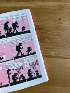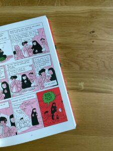 Poza tym trzeci tom to obraz tego, jak funkcjonuje system szkolnictwa, kilka wycieczek do większych zespołów miejskich, wakacje we Francji i nagły zwrot akcji na finał, decyzja o wyjeździe do Arabii Saudyjskiej. Tutaj się rozstajemy.