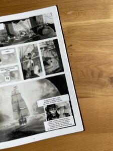 Frederic Brremaud wykonał robotę porządnie, to historia prosta i potrafi być miejscami porywająca. Za to jeszcze od strony tekstu robotę na pewno robią cytaty z literackich klasyków w każdym rozdziale. Narzucone na duże plansze przy wspomnianych już przepięknych morskich ujęciach, wypadają fantastycznie.