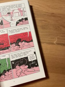 Tak, autor doskonale uśpił moją czujność. Wyobraźcie sobie, że jestem już po lekturze komiksu Ja, Fafi. Porwany brat. Wiem zatem, że Abdel dopuścił się kidnapingu i wiedziałem, że te wydarzenia miały miejsce w czwartej części Araba. I mimo to, zostałem na tyle wciągnięty w narracje o życiu Riada (zabawnym, smutnym, trochę strasznym, trochę śmiesznym), że nawet się nie obejrzałem, a Abdel znowu to zrobił. Znowu podniosło mi się ciśnienie i znowu musiałem na chwilę odłożyć lekturę.