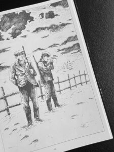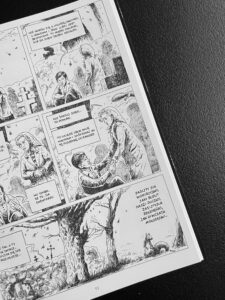 Tekst Sławomira Zajączkowskiego dobrze więc oddaje nastroje, ale nieocenionym wsparciem są przepiękne rysunki Roberta Konsztata. Artysta włożył sporo pracy w to, żeby przenieść ciężar opowieści na kadry. Konsztat rysuje szczegółowo poświęcając sporo uwagi zarówno detalom postaci (grymasy, mimika, małe niuanse przy rysach twarzy), jak i krajobrazom. Kreskowanie Konsztata to już wyższy poziom, czarno biały rysunek jak ze szkicownika uznanego artysty.
