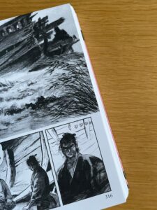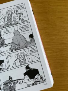 Samotny wilk i szczenię to z jednej strony klasyczna opowieść drogi, a jej kronikarski styl to ciąg krótkich epizodów podzielonych na części. W każdej dochodzi do konfrontacji, a autorzy kreślą przy okazji krajobraz ówczesnej Japonii. I jest to fascynujące pod wieloma względami. Raz, że mamy wgląd w całą strukturę działania kraju (podział administracyjny, siła zarządców mierzona wartością dochodu wioski, również szereg niestosownych zachowań jak te korupcjogenne). Dwa, że na tym tle (również fantastycznym jeżeli chodzi o szkice, architekturę, naturę, stroje), w dość ponurym okresie, tylko jedno jest pewne – siła i umiejętności szermiercze zabójcy.