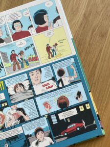 Jest tu więc zestawiona banalna codzienność z fantazjami wieku dojrzewania. W efekcie dostajemy specyficzny rodzaj humoru, tak zabawny jak i ponury. Niecodzienna mieszanka. Ilustracyjnie to pastisz, retro stylistyka i prosta kreska. Barwy są niejako wyblakłe, przygaszone. Dodaje to atmosfery nostalgii, całość „udaje” materiał zakorzeniony w latach 70. Cały album zresztą przypomina coś, co zostało odnalezione w kapsule czasu. Nieco szmatławy, na pewno niezależny, przy pobieżnym wertowaniu nie prezentuje nic ciekawego. To efekt zamierzony. Polecam bardzo.