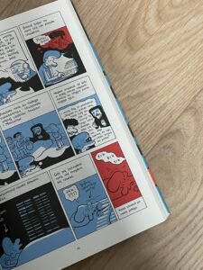 Pomijam tutaj w tekście długo sprawę ojca, chociaż przez sześć albumów była ona tą nadrzędną. Przecież z powodu ojca wydarzyło się to wszystko, nawet ten komiks powstał prawdopodobnie (albo chociaż między innymi) przez ojca, jako próba uporania się z tym problemem. Sattouf potrzebował sposobu, by to przepracować. Z pomocą przyszedł komiks. Zatem ojciec jest, ale już nie zdradzę w jakiej formie. Ważne jest to, że Sattouf jest tu, w szóstej części, dorosłą osobą. Nikt i nic nie może mu już zagrozić.