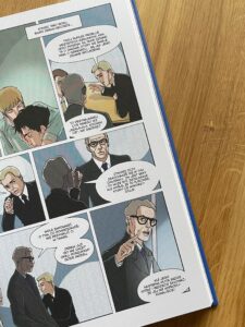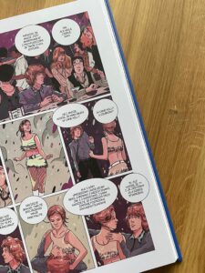 David Bowie w komiksie to krótkie rozdziały – każdy to Bowie na sztaludze innego artysty. Christelle Pécout rysuje kokainowego księcia, Leonie Bischoff wchodzi w psychodelie z połowy lat 70. i swoją rozedrganą neonową krechą podkreśla dobitnie w jakich nastrojach był muzyk i towarzyszący mu przyjaciele. Christopher, który dostał epizod berliński to chłód, napięcie i zimne kolory. I wielu innych, każdy ze swoim autorskim podejściem! Cała paleta w jednym albumie, mnogość stylów, różne pomysły narracyjne na poszczególnych planszach. Jest to jednak uporządkowany chaos. Każdy rozdział ma podsumowanie tekstowe (brawa dla Małgorzata Fangrat-Jastrzębska, tłumaczki), dostajemy fotosy, okładki albumów muzycznych, daty, kawał historii.