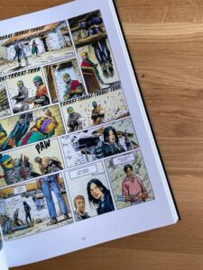 Wracając do omówienia, to dostaliśmy doskonałą historię głównie za sprawą scenariusza. Éric Corbeyran pisze historię według pewnych sprawdzonych wzorców. Opowieść jest zimna, precyzyjna, podszyta paranoją i obsesją kontroli. Wątki polityczne i konspiracyjne Corbeyran prowadzi pewną ręką, bez efekciarstwa. Richard Guérineau rysuje sprawnie; jego kreska jest surowa, ale elegancka. Twarze są napięte, kadry zwarte, a dynamika scen akcji klarowna. Gorzej jest w sekwencjach, gdy jest walka i sporo ruchu, jakaś ucieczka. Niektóre figury wyglądają zabawnie przy skokach, bohaterowie są ujęci niekoniecznie w tych najbardziej efektownych pozach (skok przez okno, turlanie się itd.).