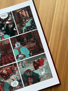 Owszem, mamy tu cały bajeczny surrealizm – nie jest to jednak tylko i wyłącznie estetyka lecz pomysł na metaforę społecznej zgnilizny, tak na szczytach władzy, jak i na nizinach. To nie jest łatwy komiks, choć jako album jest króciutki. Ale to jednocześnie mocna i intensywna rzecz, tak w obrazkach jak i w treści. Funkcjonuje trochę jak alegoryczna opowieść o społeczeństwie ukrywającym własne lęki pod maską spektaklu. Horror, groteska, niezdrowe uniesienia – bardziej artystyczny niż rozrywkowy, dla mnie wspaniały.