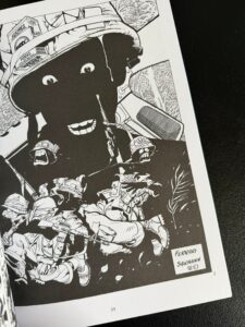 Przy tym wszystkim praca nad każdym kadrem musiała pochłaniać dużo czasu – czuć tutaj bardzo pracochłonny proces. Mam nadzieję, że każda roboczogodzina była zapłacona. Oby. Idąc dalej tropem „czytania” tych rysunków, to Saichann nie zostawia po prostu pustych przestrzeni. Każdy kadr jest jak labirynt – miasto, które samo siebie pożera. I zawsze, mimo wszystko, jest trochę inaczej (choć cechą wspólną jest tu mocny skręt w kierunku karykatury – tak postaci, jak i każdego jednego przedmiotu).