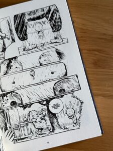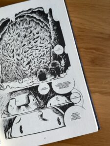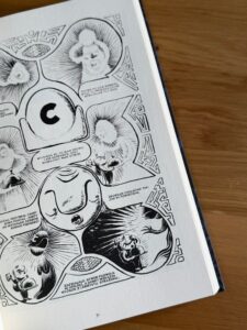 W zbiorczym albumie, już w duecie Szulc-Babczyński, otrzymujemy wgląd w cały archipelag – szerszą perspektywę na projekt, który w każdym swoim elemencie pozostaje oryginalny. Porównania formalne do czegokolwiek wydają się tu zbędne, bo zarówno Szulc, jak i Babczyński prowadzą rodzaj twórczego pojedynku nie oglądając się na innych: pierwszy fechtuje słowem, drugi – rysunkiem, który ponownie trudno mi do czegokolwiek przyrównać. To czarno-biała kreska, gruba, a zarazem szczegółowa w odniesieniu do przedstawionego świata. Widać, że Babczyński lubi swoje postaci; widać też emocjonalne przywiązanie do projektu. Całość, choć balansująca na granicy mroku, pozbawiona jest negatywnych konotacji w warstwie ilustracyjnej.
