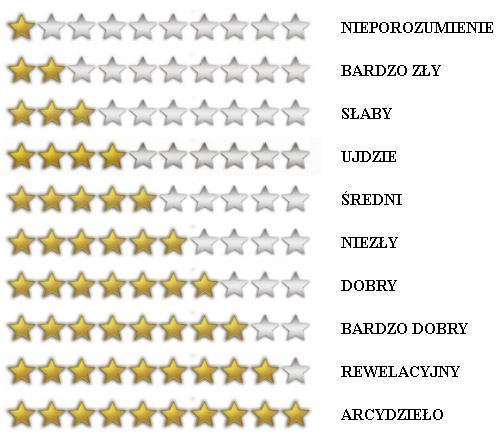 Wypadałoby wyjaśnić na jakiej zasadzie oceniam filmy. Poruszamy się po dziesięciostopniowej skali ocen.