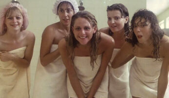 Ikoniczna scena ze Świntucha. Dziewczyny strudzone zajęciami wychowania fizycznego zażywają oczyszczającej kąpieli w szkolnych łaźniach. Dużo tu chichotów, a nieskrępowane niczym dziewczęta…